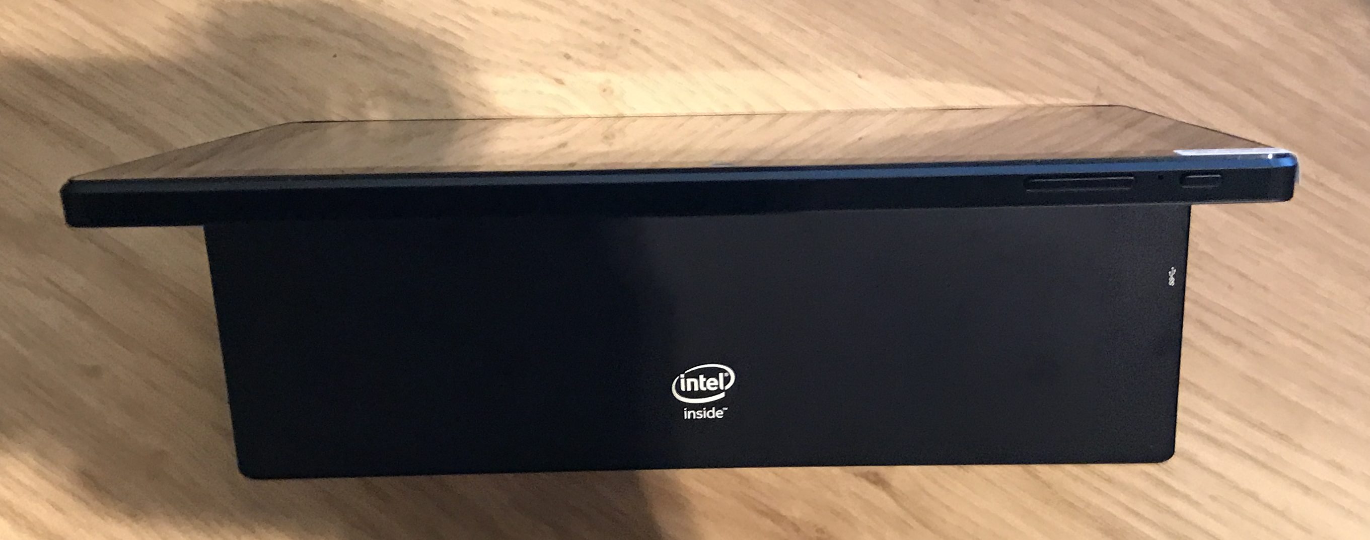Other design changes include the clip on keyboard cover, which makes a satisfying click when docking it to the tablet itself. Additionally, they’ve made a couple of connectivity changes which might be seen as better or worse depending on the angle from which you’re standing. You now only have a single USB 3.0 Type-A port (instead of two on the 1010), but you do get a microUSB OTG cable in the box to provide you with that extra port should you need it. The charger is now a hardwired microUSB plug which provides 2A of power – I’m not entirely sure why Linx decided to go down this route instead of providing a power brick with a USB port. Cost savings, maybe?