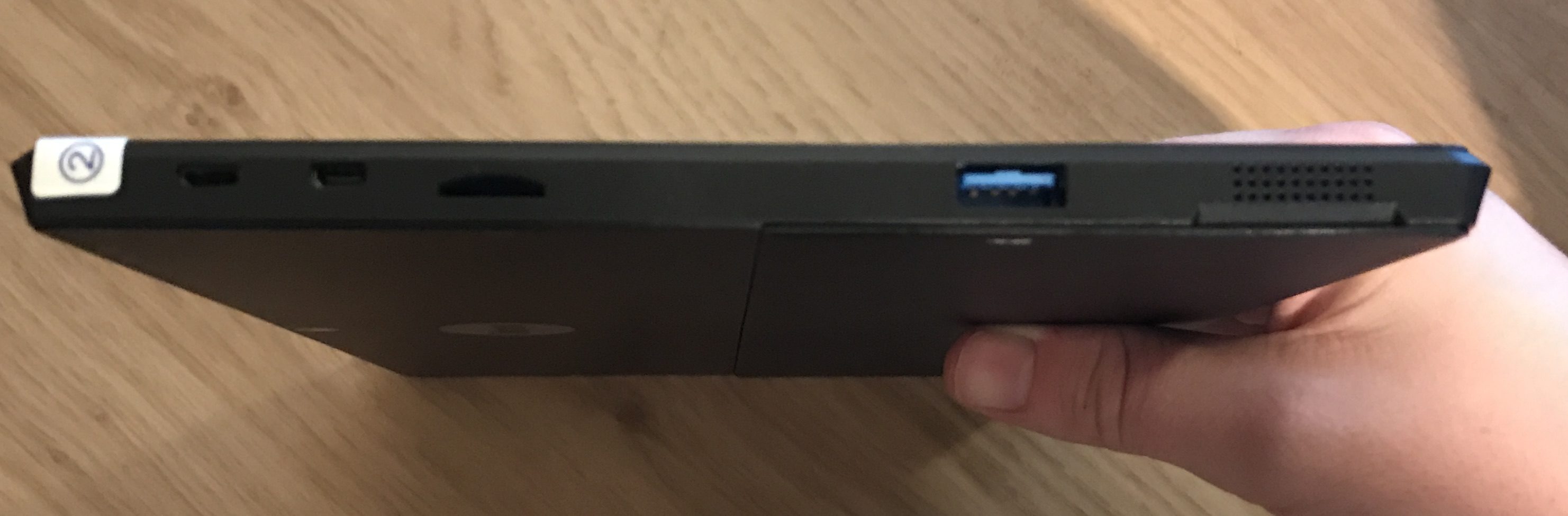64GB of eMMC storage is fitted by default (around 20GB of which is used by the device itself) – this isn’t a gargantuan amount but will happily store your office software and a small multimedia collection. For those that need more, there’s a MicroSD card slot which supposedly will allow you to add up to 200GB more storage with the right card.